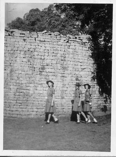 Que Que and Gwelo Girl Guides exploring Zimbabwe Ruins 1960. (I think L to R Melody Hannaford , Adelaide Hahn, Wendy Allen.)